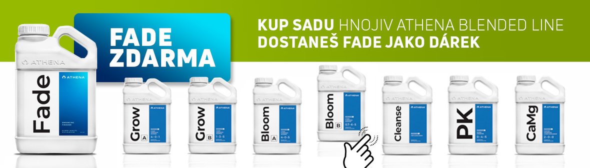 Ve spolupráci s renomovaným výrobcem hnojiv ATHENA jsme pro vás připravili speciální akci. Ke každé sadě kapalných hnojiv Athena Blended Line nyní obdržíte zdarma přípravek Fade, určený pro závěrečnou fázi pěstování.